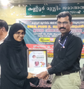 The Kannur Muslim Jamaat honored by presented a gift to Shahba Fathima, a native of Kannur City, who is famous for writing the Holy Qur'an in her own handwriting. Kannur Noor Masjid Khateeb J. UP Siddique Sahib presented the gift.